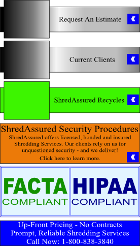 Home | Paper Shredding | Computer Destruction | Other Services | Security Procedures | Security Containers | FAQs | About Us | Contact Us